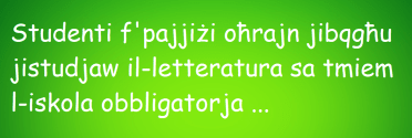 Permezz tal-letteratura Maltija, l-għalliema jistgħu jagħtu lill-istudenti l-opportunità li jħaddmu huma, għalihom infushom u għal xulxin, il-lingwa tagħhom b’mod kreattiv biex jinterpretaw dak li jaqraw. Barra minn hekk, jistgħu jesprimu lilhom infushom bħala individwi u bħala ċittadini Maltin ta’ dinja dejjem aktar żgħira u fl-istess ħin ikkumplikata.