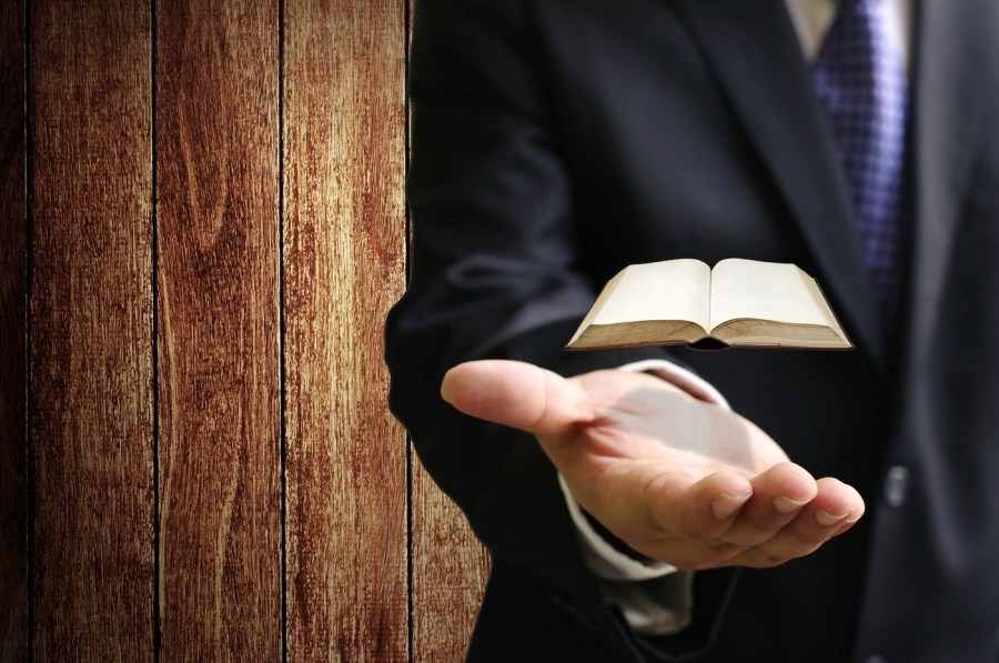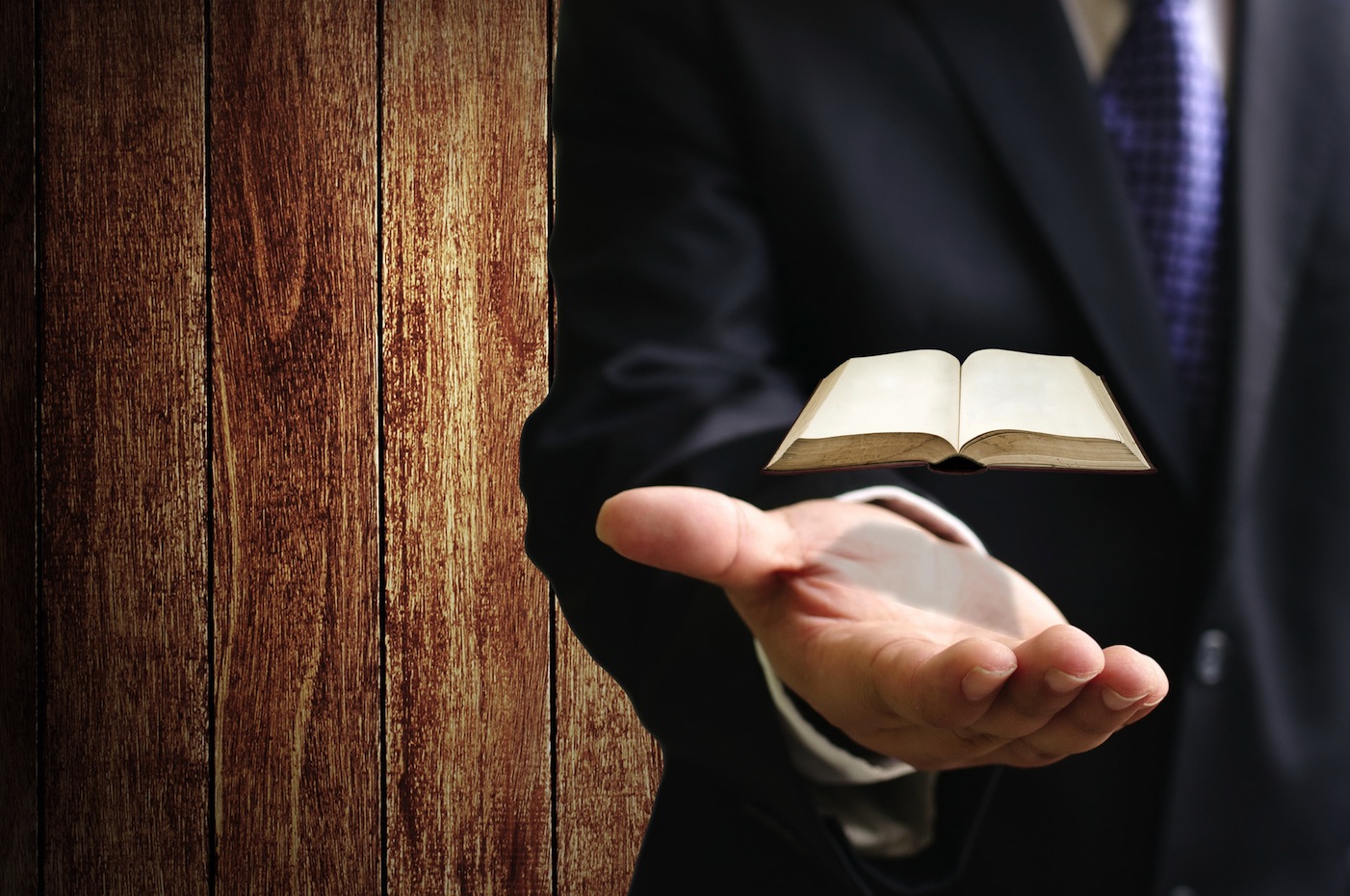 Virtual book on businessman hand, Searching technology